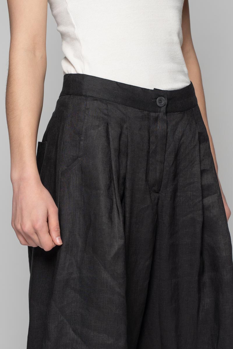 Ease and lightness for warm days. Cut in pure linen, the Ouna Pants skim the waist, fall into a soft, relaxed volume through the leg, and taper gently at the ankle for a balanced silhouette. A smooth front with an elasticated back keeps the fit comfortable and flattering. Pair with the Oki Top for an effortless summer set.